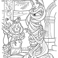 라푼젤이 정말 예쁜 왕관을 쓰고서 어딘가를 쳐다보고 있네요~ 대체 무슨 생각을 하고 있는걸까요? 파스칼은 어찌나 가벼운지 라푼젤의 머리카락 위에 올라갈 수도 있군요!